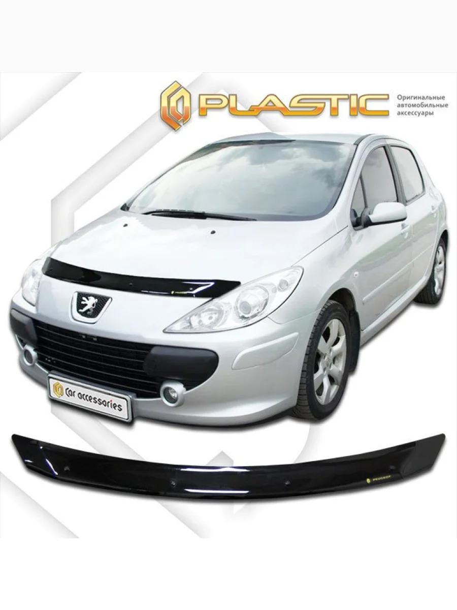 Дефлектор капота Classic черный Peugeot 307 SW I поколение рестайлинг, универсал, рынок России 2005 - 2007 в Таганроге Ростовская область