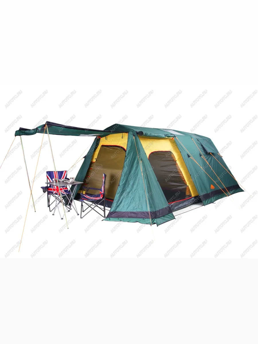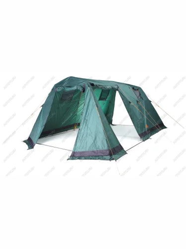 У вас большая семья или веселая компания, тогда лучшее предложение - палатка Victoria 10. Две просторные спальни, каждая на пять человек общей площадью почти 18 квадратных метров. Можно использовать эту палатку и семьей в 3-4 человека. Тогда у вас будет большая столовая и отдельная спальня. Внутренняя палатка надежно защитит вас от мошкары и змей. Главное держать входы во внутреннюю палатку постоянно закрытыми. Если вы захотите сделать просторную столовую для друзей, просто снимите внутреннюю палатку и под тентом легко разместится большая веселая компания. При достаточно больших размерах палатку может установить даже один человек, но намного удобней будет устанавливать палатку вдвоем или втроем. Время установки занимает не более 10-15 минут. Все элементы, которые должны соединяться при сборке палатки, имеют сходную цветовую маркировку. Для своего размера палатка очень устойчива даже на сильном ветру, но очень важно в момент установки натянуть все растяжки и закрепить палатку по периметру колышками. У палатки три широких входа, это позволит проветривать палатку в жаркую погоду, а в дождливую погоду выбрать тот вход, в сторону которого не направлен поток дождя. На входах в тамбур есть полог из москитной сетки, это защитит вас от комаров и мошки.Комфорт сна обеспечивается двухслойной конструкцией палатки: поток воздуха циркулирует в пространстве между внешним тентом и внутренней палаткой, испаряет конденсат, забирает продукты дыхания и выводит их через вентиляционную систему. Для эффективной вентиляции обязательно откройте и натяните защитные короба над вентиляционными окнами. Если ожидается очень сильный дождь, то следует закрыть вентиляцию полностью. В жаркую погоду козырьки можно отстегнуть по сторонам, свернуть и закрепить над окном.Тент палатки выполнен из прочной, устойчивой к истиранию и разрушению ультрафиолетом полиэстеровой ткани (Polyester 190 T PU) с многослойным полиуретановым покрытием c внутренней стороны. Данное покрытие гарантирует водонепроницаемость более 10 000 мм водяного столба (давление воды при обычном дожде не превышает 1500-2000 мм) для новой палатки и не менее 4000 мм для палатки, используемой в течение нескольких лет. Для увеличения водоотталкивающих свойств внешняя сторона тента обработана специальной пропиткой Water Repellent (водоотталкивающая пропитка). Также ткань пропитана составом, задерживающим распространения огня (в месте падения искры ткань может оплавиться, но не произойдет общее возгорание палатки, что очень важно с точки зрения безопасности). Дно палатки выполнено из высокопрочного, устойчивого к истиранию армированного полиэтилена с многослойным покрытием полиуретаном. Максимальная водонепроницаемость составляет более 6000 мм водяного столба, минимальная - 4000 мм водяного столба. Дно палатки сшито в виде короба, это спасет вас от затопления даже в очень сильный дождь. Тент внутренней палатки произведен из полиэстеровой ткани Polyester RipStop Light с усилением. Для усиления ткани без большого увеличения веса вплетена более толстая и прочная нить с равномерным шагом по вертикали и горизонтали - это технология RipStop. Ткань паропроницаема и почти не конденсирует на себе влагу, обработка WR (водоотталкивающая пропитка) не позволяет каплям конденсата проникать во внутреннюю палатку, что гарантирует сухость и комфо