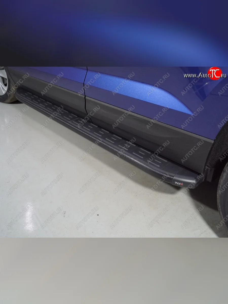 Пороги алюминиевые с пластиковой накладкой ТСС Тюнинг Volkswagen Taos (2020-2022) (карбон черные) в Таганроге Ростовская область