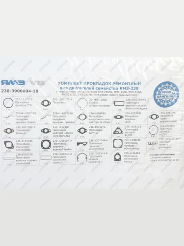 | Наименование | Прокладка двигателя ЯМЗ-238М2,Б,Д,ДЕ,БЕ,АК комплект полный АВТОДИЗЕЛЬ ЯМЗ 238-3906004-10 в Таганроге Ростовская область |